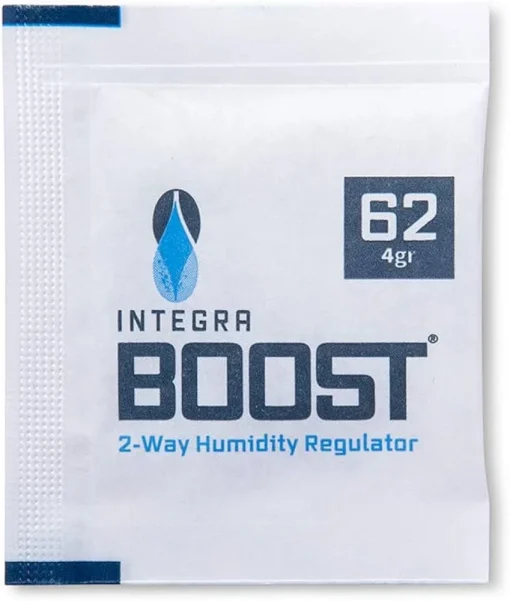 Integra Boost Humidity Packs are the best method of keeping your harvest fresher while extending longevity. The curing and storage of your product doesn’t have to be a challenging experience. A handy Integra humidity pack uses a patent pending method to maintain storage contents at 62% humidity; the optimum humidity level for bud. Avoid mold while maintaining the flavor, aroma, and potency of your product. They’re perfect for jars that are constantly being reopened throughout the day. Get the most out of your crop with Integra Humidity Packs. Maintains 62% RH levels. Prevents mold and mildew. Preserves freshness, taste and aroma. Extends shelf life. Durable and puncture resistant overwraps. Food grade, non-transferable ink. These do NOT come with indicator cards. packet size: 45mm x 45mm. Ideal for up to 7g of Plant.