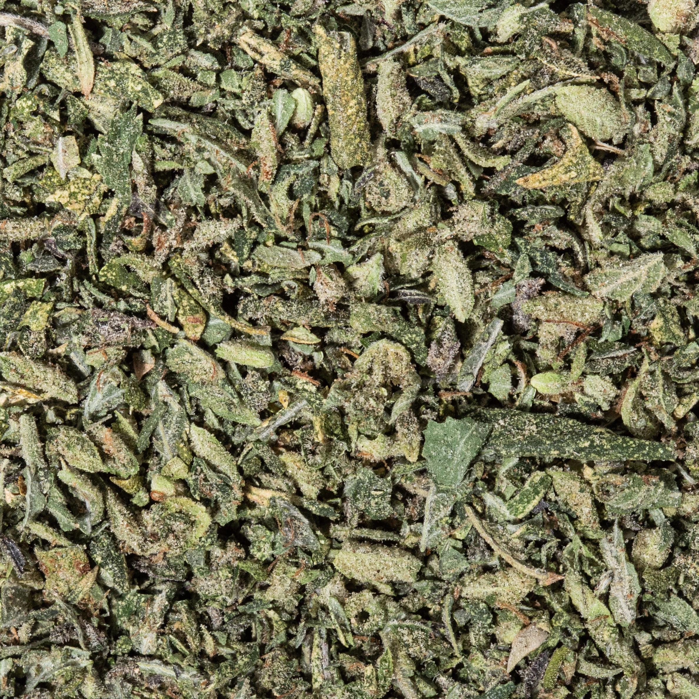 Trichomes: Visible crystal fragments mixed throughout the shake, giving it a lightly frosted look.