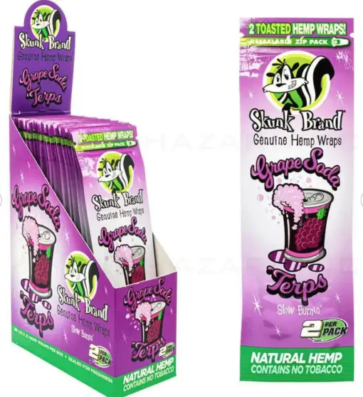 Skunk Brands Terp Enhanced Hemp Wraps add bold, juicy flavor to your herbal blends. Made from natural toasted hemp and free from tobacco, these wraps deliver a mellow, smooth smoke that elevates your experience. Infused with terpenes, they take your blunts to the next level.